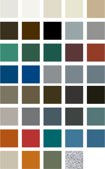 Fluropon Finish - standard paint colors are produced by Valspar and contain a minimum of 70% PVDF (Kynar 500 and Hylar 5000 ) base resin with ceramic pigments. All colors are formulated to ensure consistent appearance and quality.